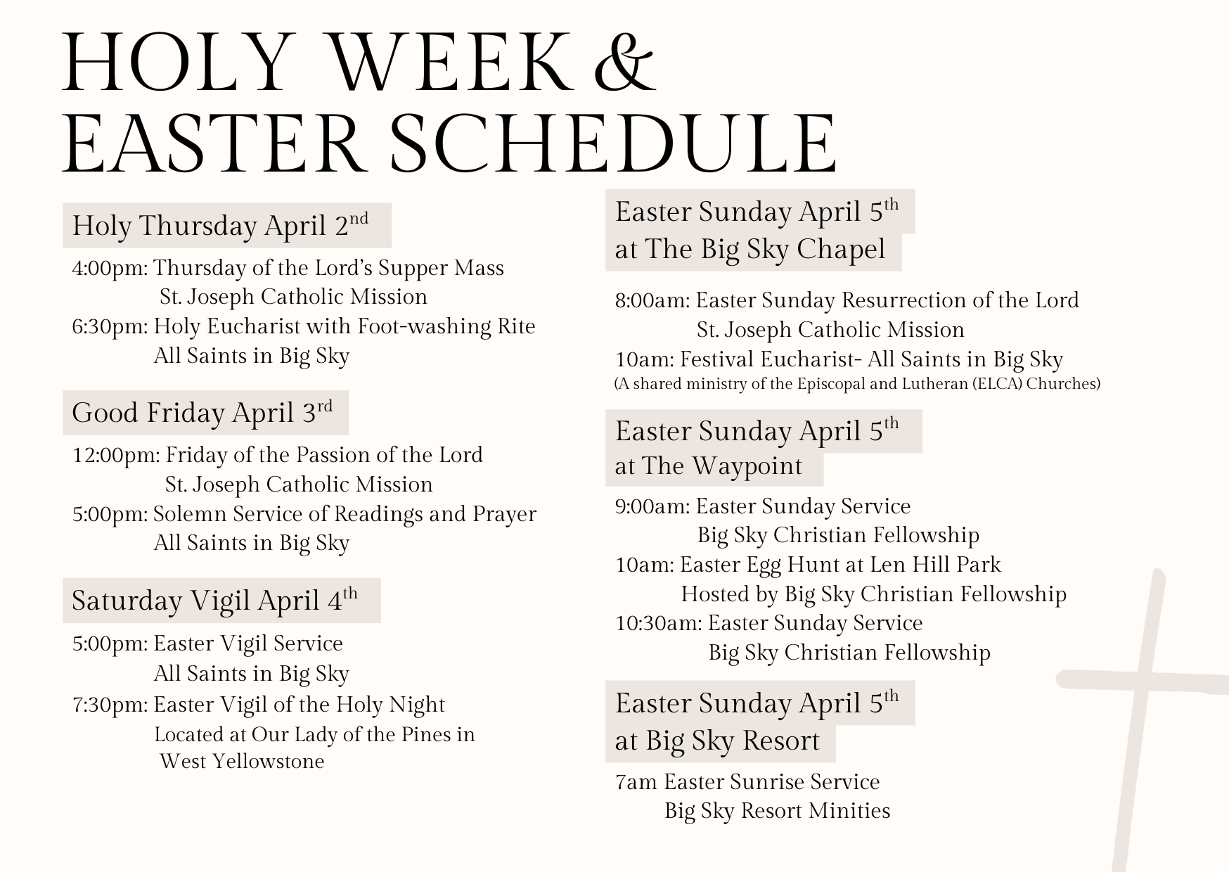 10:00 am, All Saints in Big Sky A shared ministry of the (ELCA) Churches